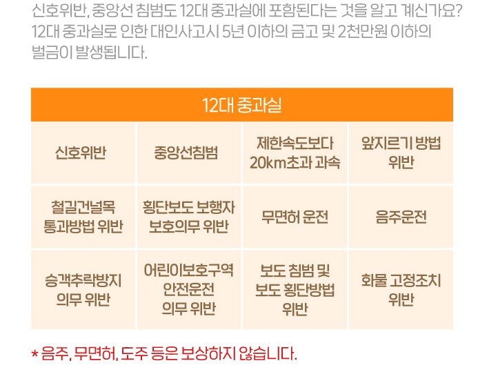 물론 피보험자가 형사합의금을 피해자에게 먼저 지급한 다음, 보험금으로 청구하는 것 역시 가능하다. 다만 보험사가 피해자에게 직접 보험금을 지급하는 경우에도 형사 합의는 피보험자와 피해자 당사자끼리 진행해야 한다. 설령 운전자보험에 가입했다고 하더라도 중대 법규 위반 가운데 뺑소니(사고 후 도주), 무면허 사고, 음주 운전으로 인한 사고는 보상되지 않는다.